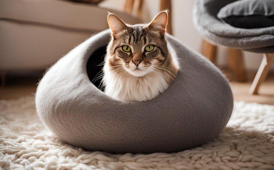 Each Cat Cave is hand-felted with love from the highest quality, soft merino wool to ensure that your pet is happy and healthy. They are handmade with 100% organic materials - no chemicals, no emissions, no factories… just love.
