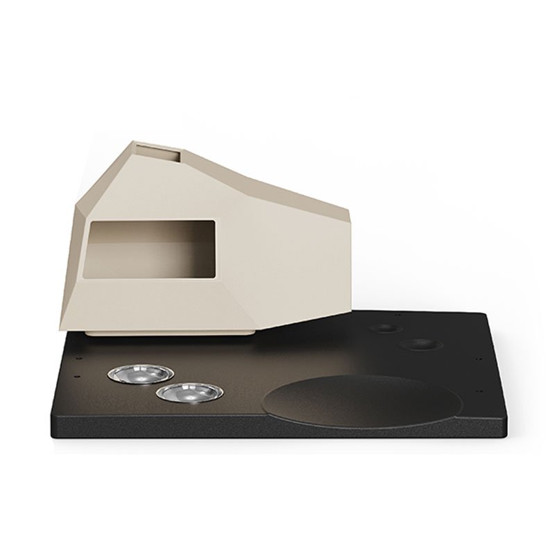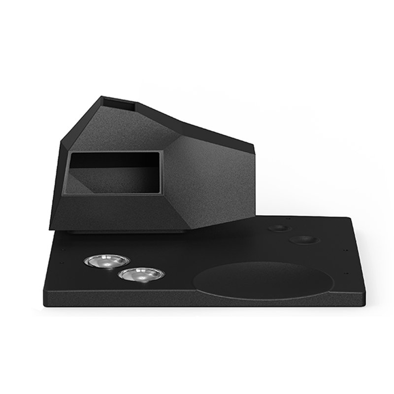 Irregular geometric structure with sharp lines for a highly technological look.